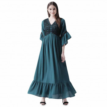 bell sleeved embellished maxi dress looking for some awesome collection of dresses? well, lay your hands on this dress from cottinfab and also get the option of choosing from yellow colour. dress up in a soothing pattern and don this dress made of rayon material. satiate your love for dresses by grabbing s size priced at ₹1389 .