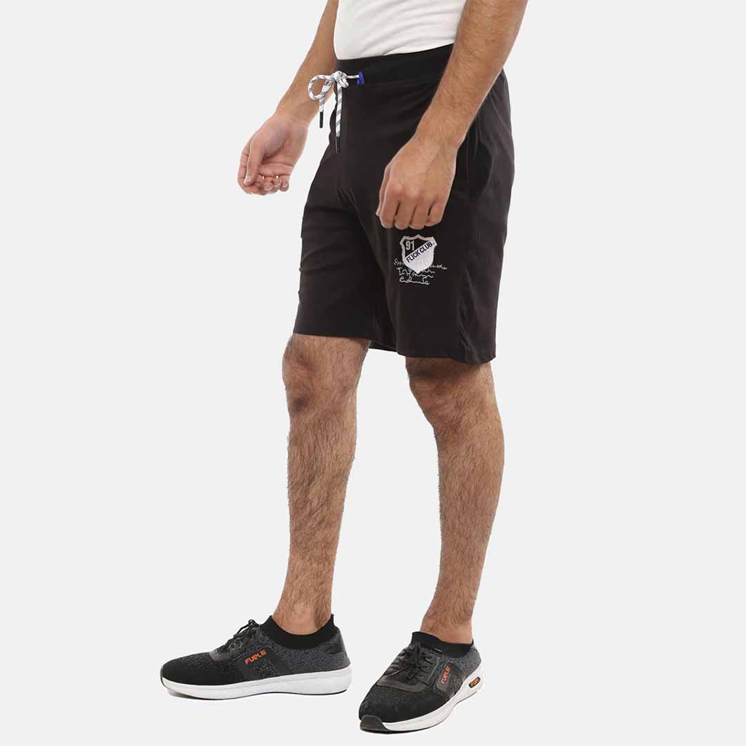 pump up your collection by adding this solid black men's bermuda, that is designed in terry fabric. this regular shorts comes with an above knee length. team it up with a loose tee and sports shoes when you are going for a gym or an evening walk FIT & SIZE: