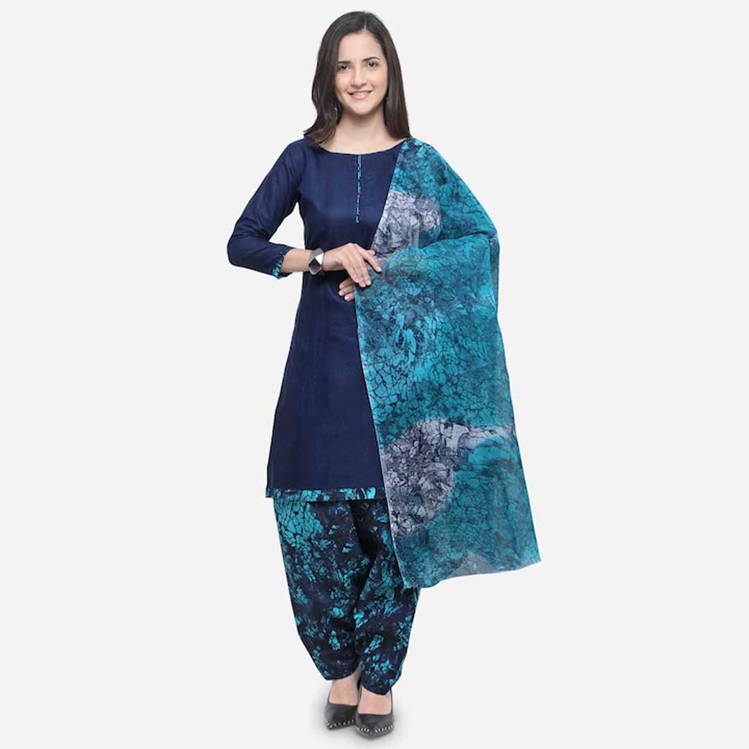 Blue printed unstitched dress material