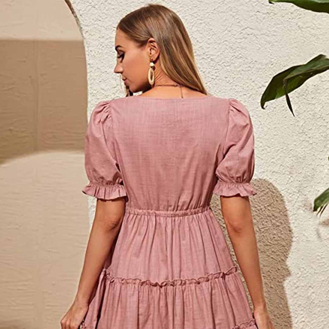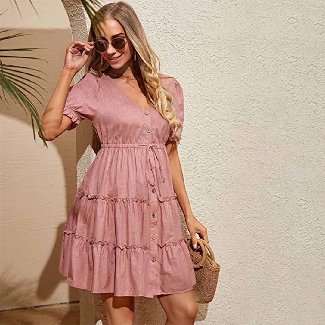 Dress features a super cute stripe pattern,