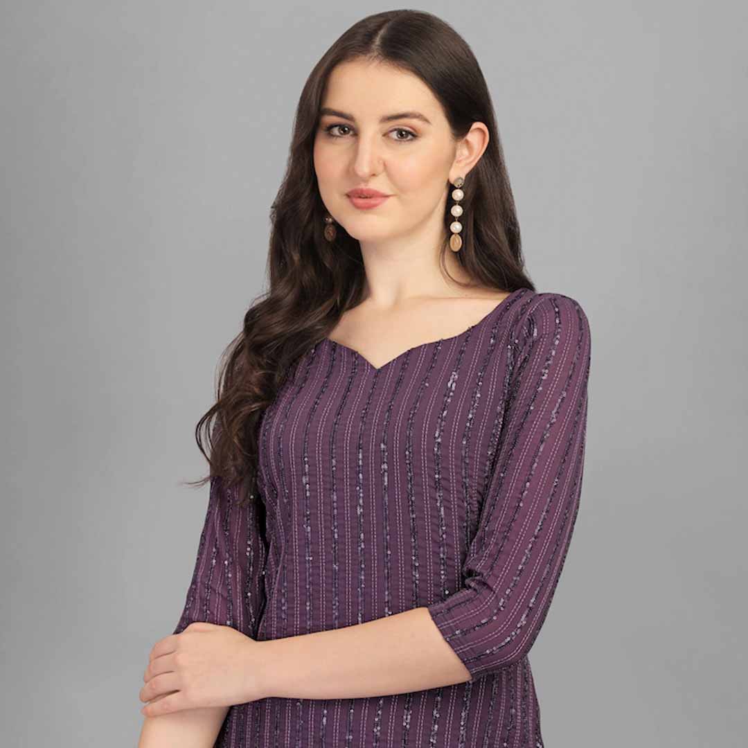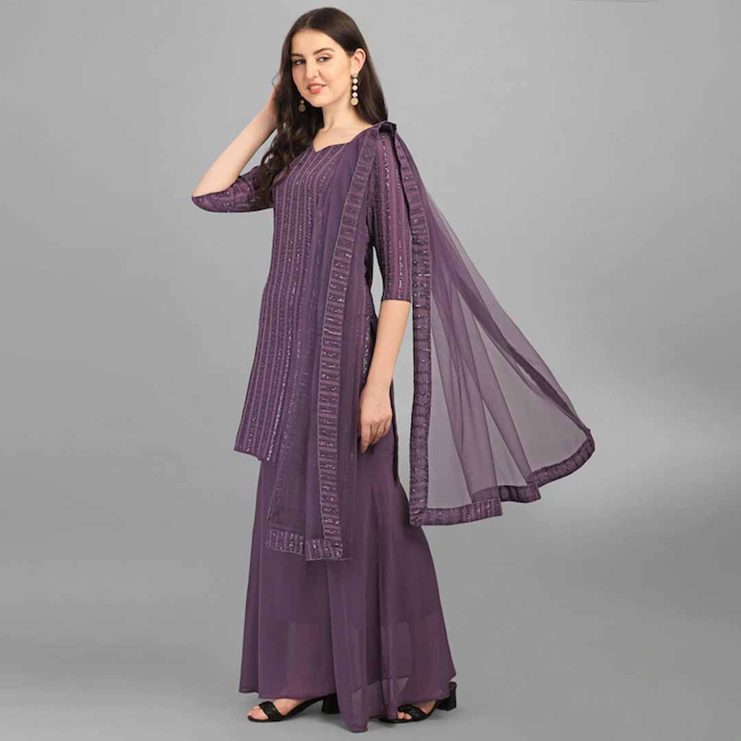 Lavender embroidered semi-stitched dress material