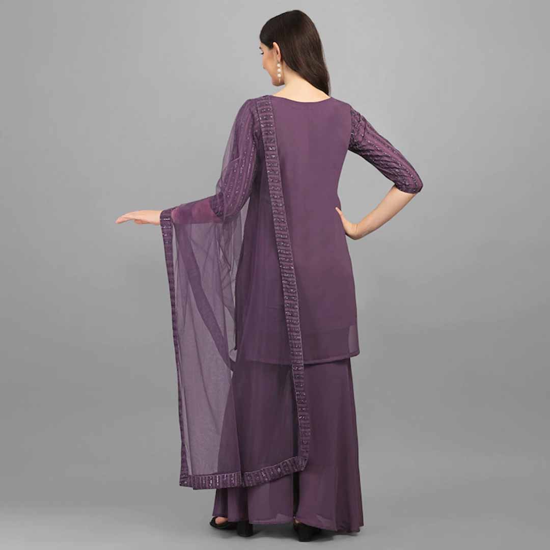 Kurta fabric: heavyFaux GeorgetteBottom fabric: heavyFaux GeorgetteInner Fabric :- Royal CrepeDupatta fabric: NetHand Wash