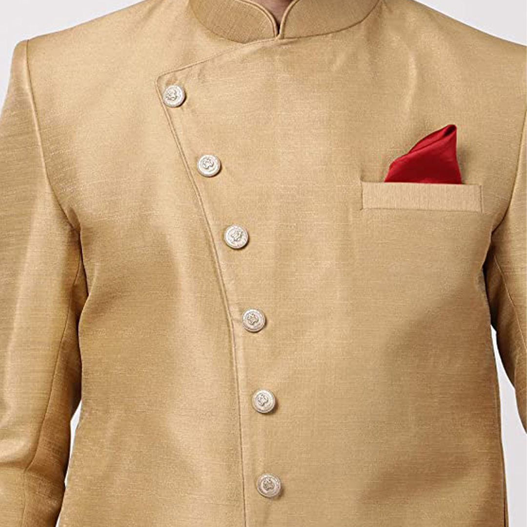 Product Details: We introduces to you these classy sherwani for men stylish latest design in variety of material and designs for all occassions. This fabric has been designed keeping in mind the latest trends in a semi formal fashion or occassional fashion. Engineering garments which fit all body types and style is our aim. We offer not just servani for man for wedding but also indo western for men and semi sherwani as well covering the entire space. Our servani are constructed in such a way that you can adorn it with a churidar, dhoti for men or a patiala too. To complete the look adorn a mojari or jutti slippers for men stylish, you may also try an authentic Kohlapuri chappal for men, the fashionistas and millennial folks may experiment with a brogues or oxfords juta for men stylish. Suitable for: Party, Weddings, Regular Wear, Celebrations, Occasions, Festivals, Lohri, Pongal, Makar Sakranti, Baisakhi, Holi, Eid, Raksha Bandhan, Dussehra, Diwali, Navratri, Pooja, Christmas, Onam, Ganesh Chaturthi, Janmasthmi and Gifts for Mens. SIZE:The above mentioned model is wearing the size of "L" WASH AND CARE: Dry Clean Only FIT TYPE: Regular Fit
