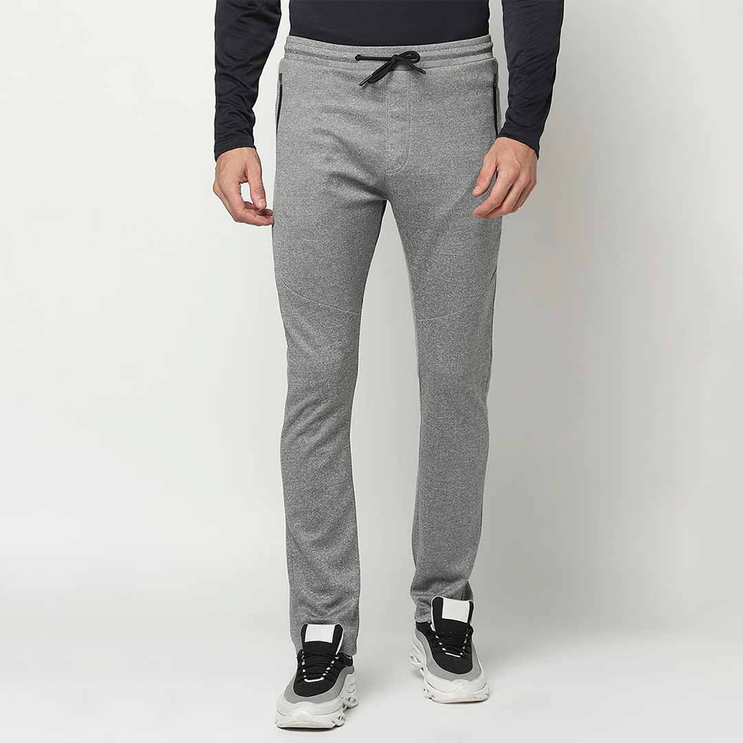 these tri-pocketed slim fit track pants are tailored in a straight cut and offer great ease of movement upon wear. perfect for long hours, these pair of grey tracks are a modern wardrobe essential.