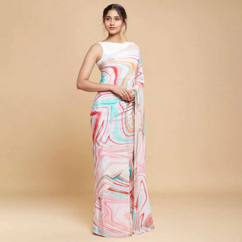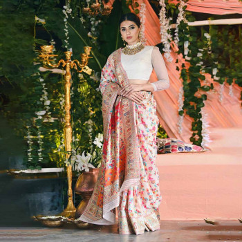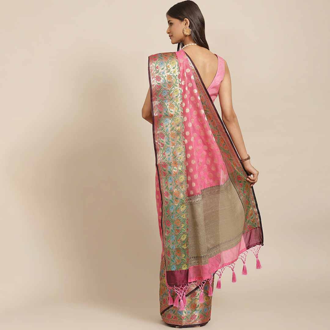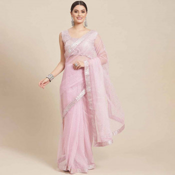 Pink and silver-toned saree Geometric embellished saree with embellished border border Has sequinned detail