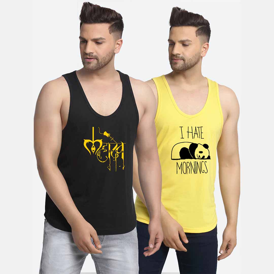 high quality premium printed casual printed sleeveless u neck drop cut gym vest direct manufacturers. 100% pure cotton 175 - 180 gsm cotton used. gives you perfect fit, comfort feel and handsome look. trusted brand online and no compromise on quality.