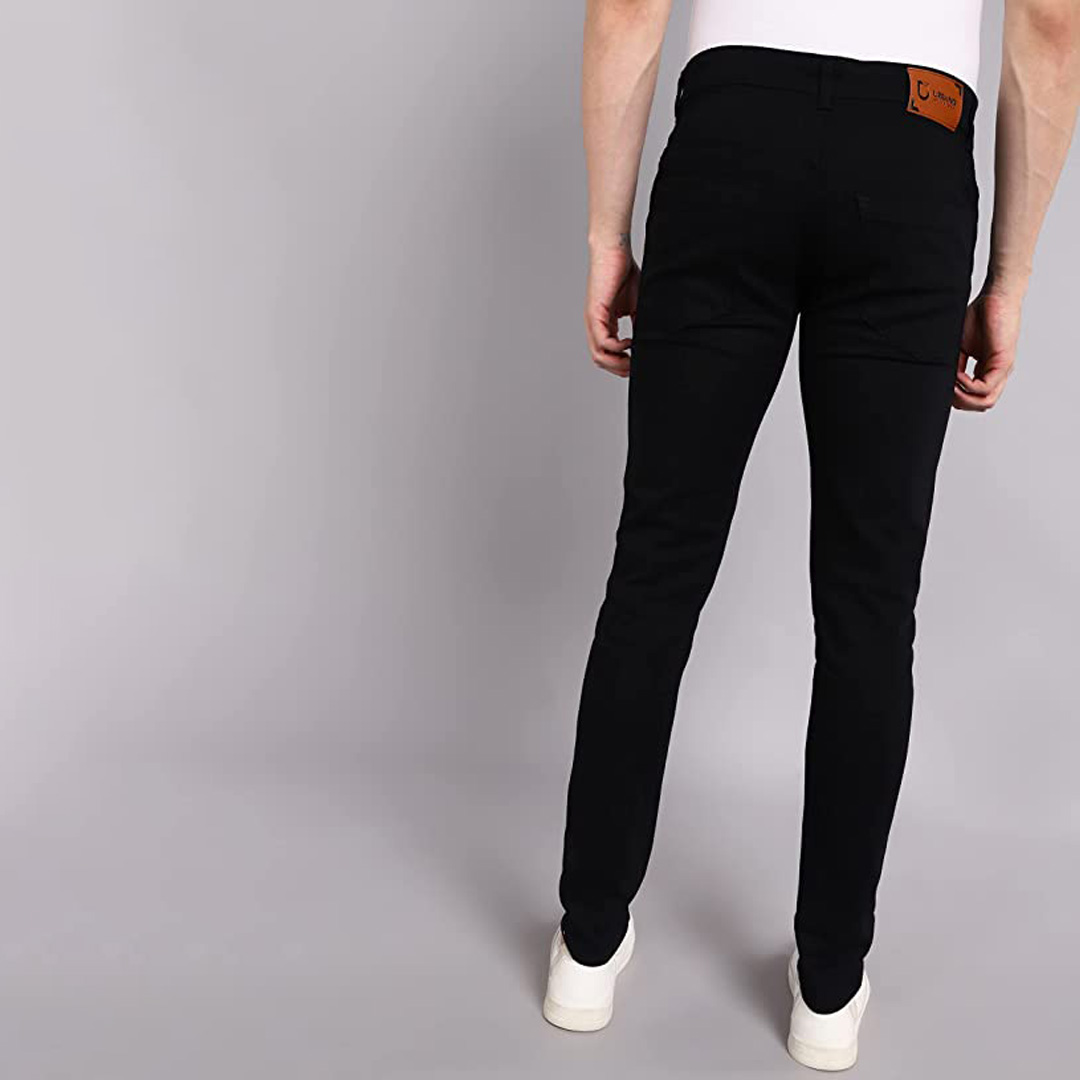 Color: Black Pockets: 4 Fit Type: Regular Fit Fabric: Cotton Lycra Fabric with Stretch Care Instructions: Mild Wash, wash separately Pattern : Solid Style Zip : Zip Fly with Button Closure