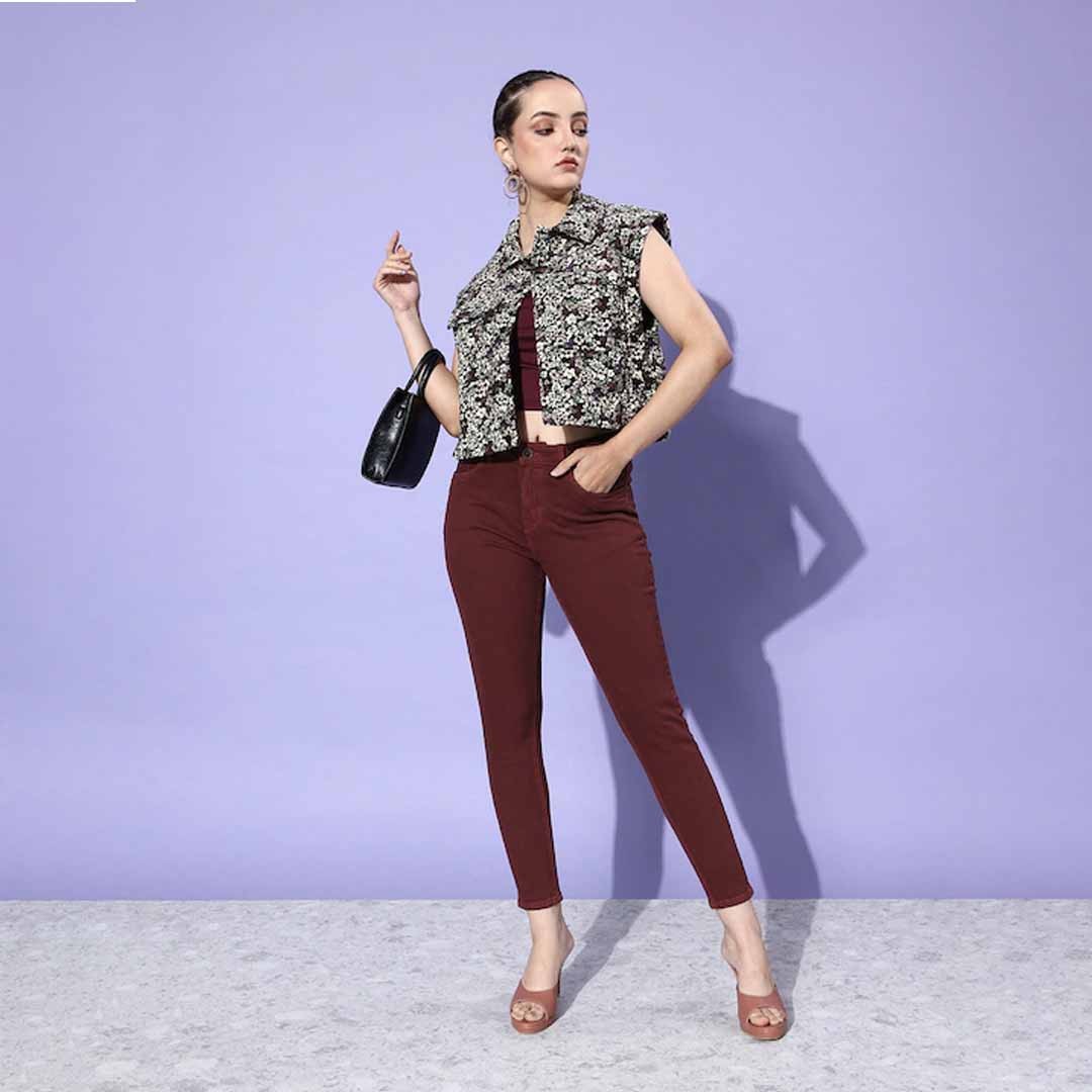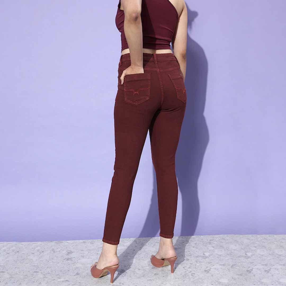 Coloured no fade burgundy jeans