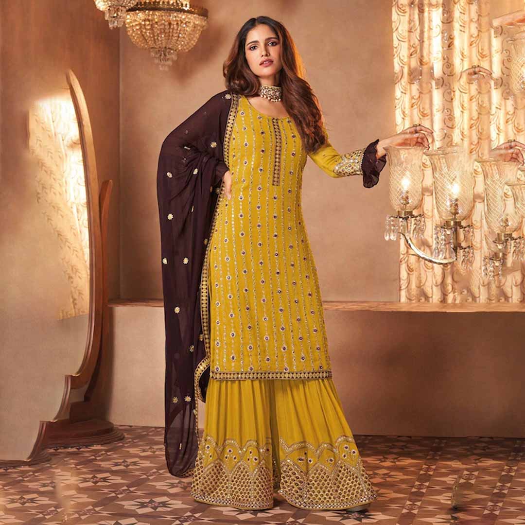 Top Fabric : Fox Georgette || Bottom Fabric : Fox Georgette || Duptta Fabric : Fox Georgette|| Inner Fabric : CreapWash Care: Dry clean for the first wash, there after hand wash