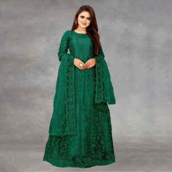 Green Embroidered Semi-...